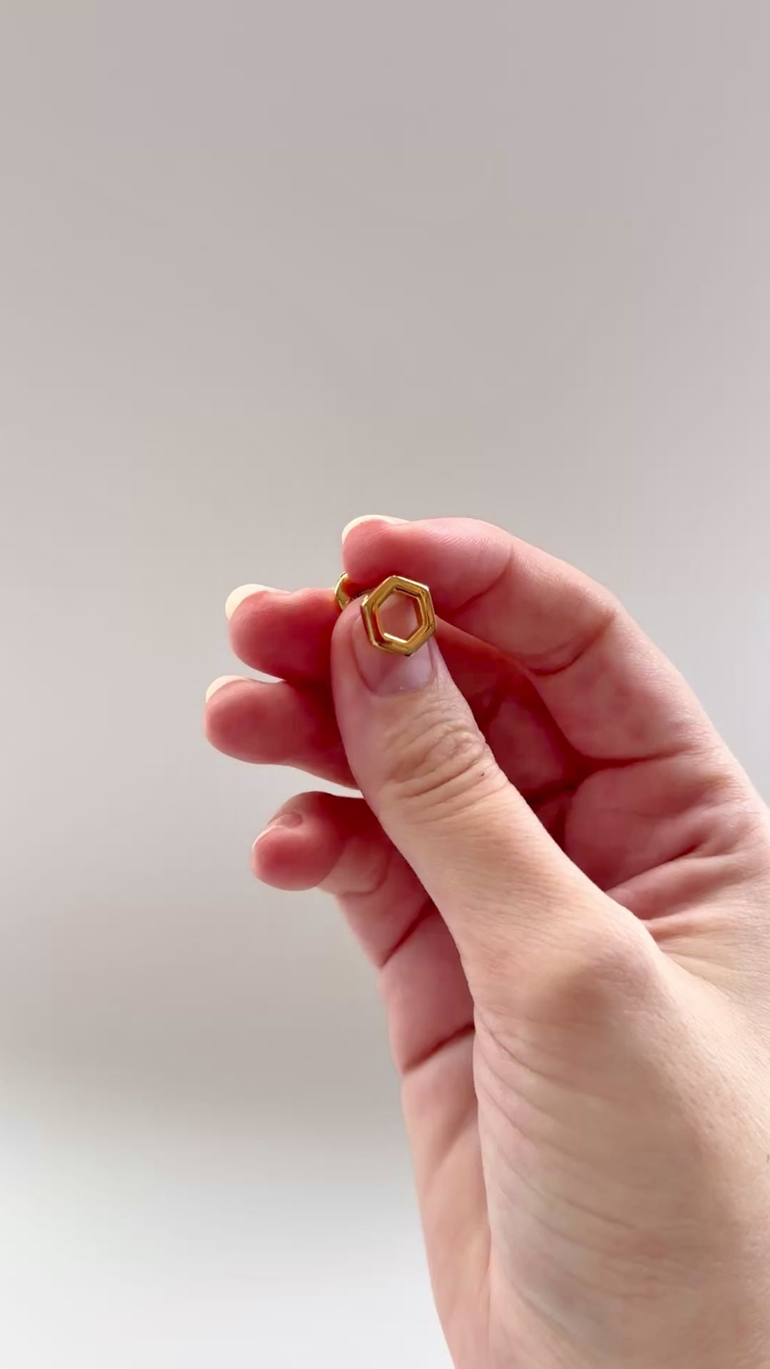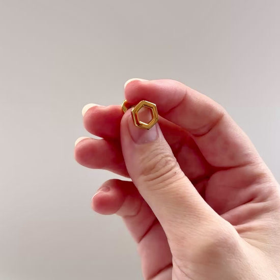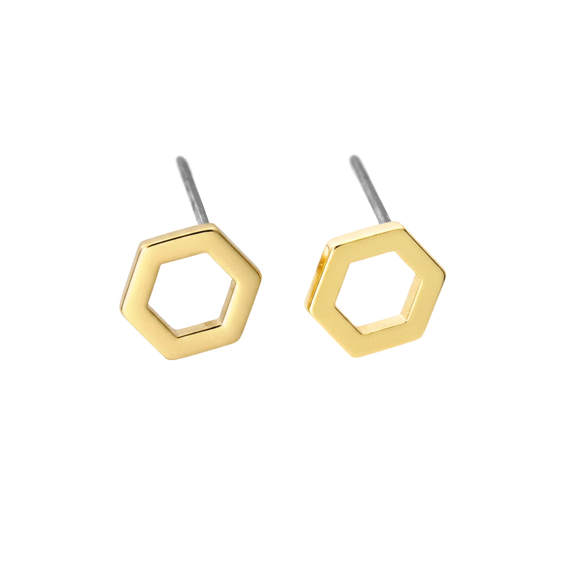 Pair of hexagon earring studs with posts that fold flat into the earring.